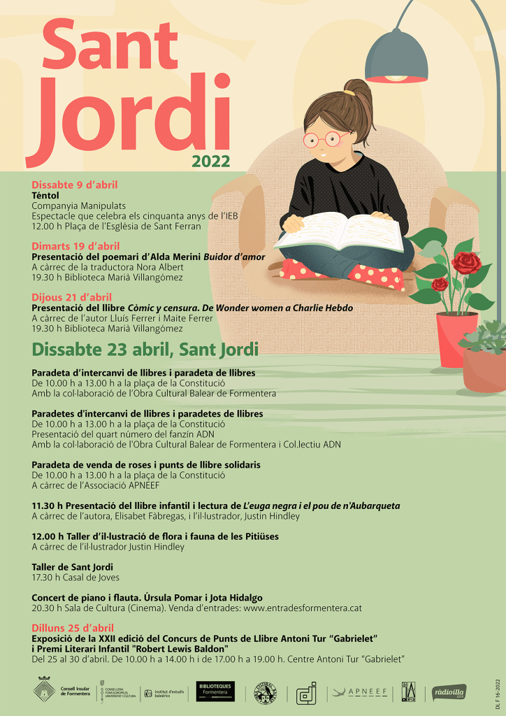 Cartell i il·lustracions per a la programació de Sant Jordi d’enguany.