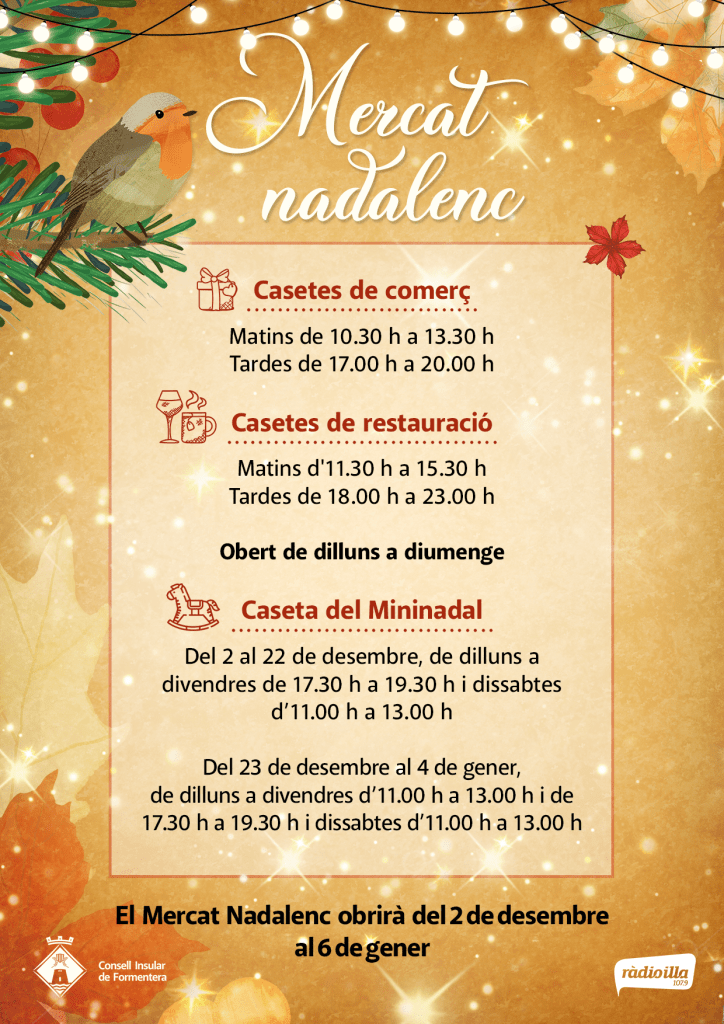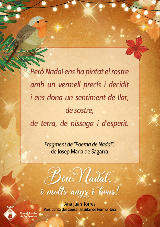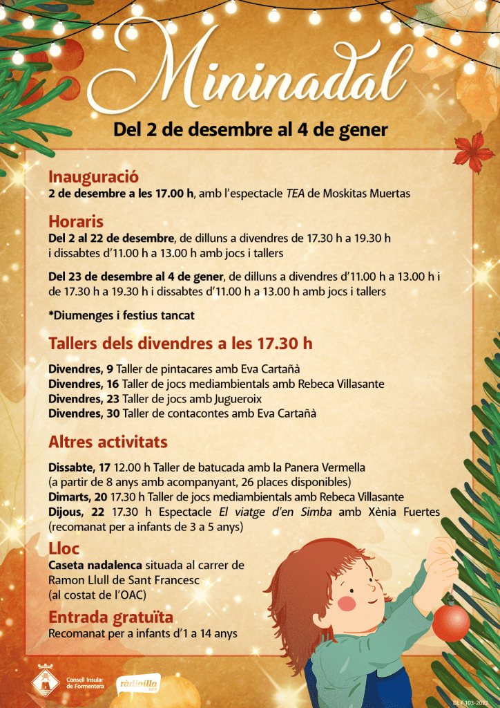 Com els darrers anys, he fet tota la cartelleria de Nadal per al Consell de Formentera. Són molts cartells amb diferents necessitats i cada any em costa trobar una solució que els unifiqui i no sigui només un fons. Tampoc puc fer servir elements típics de Nadal, a Formentera no hi ha avets, neu ni trineus. En fi… me n’he sortit amb dos elements alterns i un fons comú.