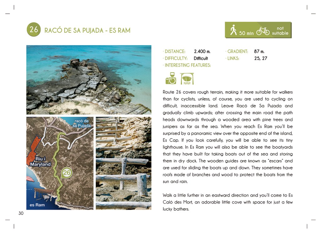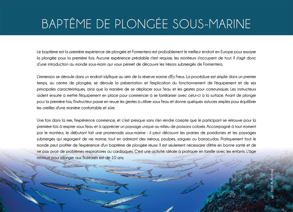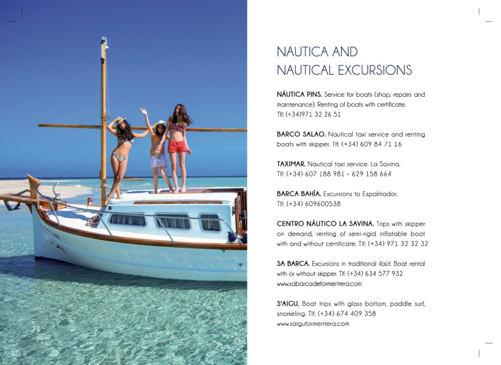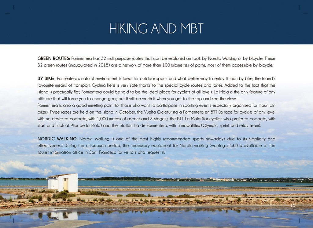 Durant 6 anys vaig treballar com a dissenyadora a l’àrea de promoció turística. Les meves tres tasques principals eren la maquetació dels catàlegs temàtics (submarinisme, patrimoni, platges, rutes verdes…) en més de 10 idiomes, el disseny d’anuncis per a revistes i el disseny per material gràfic i estands de Formentera en fires turístiques. Aquí un micro recull de treballs: