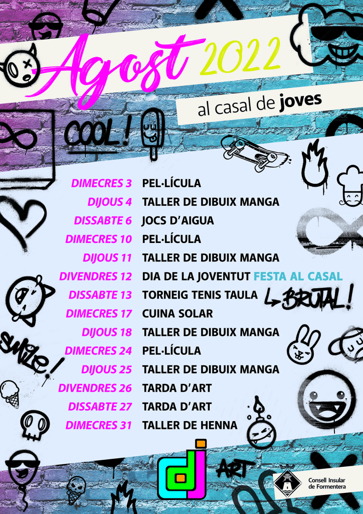 Aquí trobareu un petit recull de feines de disseny amb diferents línies gràfiques i objectius comunicatius. Aquests treballs els he desenvolupat al Consell Insular de Formentera. Les il·lustracions que hi surten són pròpies.